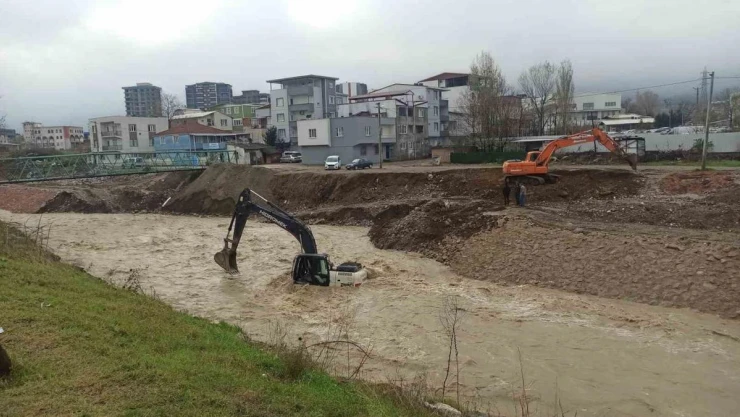 Olay, merkez Yıldırım ilçesi İsabey Mahallesi Deli Çay deresinde sabah saatlerinde meydana geldi. Aralıklarla etkili olan yağış ve Uludağ’dan eriyen kar suları, derelerin debisinin yükselmesine sebep oldu. Deli Çay deresinde ıslah çalışması yapan kepçe operatörü ise, yağışların dinmesiyle çalışmalarını sürdürmek istedi. Ancak yağışlarla birlikte ıslanan toprağı hesaba katamadı. Derenin debisinin yükselmesi, altındaki toprağında yumuşamasıyla biranda kendini derenin ortasında bulan kepçe operatörü neye yapacağını şaşırdı. İş makinesinin de durmasıyla kepçenin üzerine çıkan operatör, şaşkın bakışlar altında kurtarılmayı bekledi.
