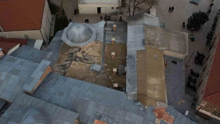 (Özel) Bursa'da tarihi çarşının çatısındaki kurşun kaplamalar çalındı