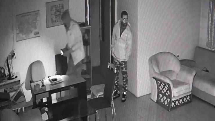 Sitelerdeki güvenlik kameralarına yansıyan anlar ise hırsızların pişkinliğini gözler önüne serdi. Güvenlik kameraları fark etmelerine rağmen ellerini kollarını sallaya sallaya siteye giren zanlılardan biri gözcülük yaparken, diğeri ise kapıyı açmaya çalıştı. Sitenin yönetim odasına giren zanlılar, koltuk üzerindeki çantayı alırken, çekmecelerde ise değerli eşya aradı.