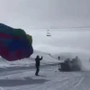 Kaval’ın Ergan Dağı Kayak Merkezi’nde ikinci gösterisi ise paramotora bağladıkları çift katlı ranzayla uçmak oldu. Paramotor bir süre gittikten sonra havalanmaya başlamadan devrilerek yere çakılıp parçalandı. Kaval herhangi bir yara almadan kazayı atlattı.