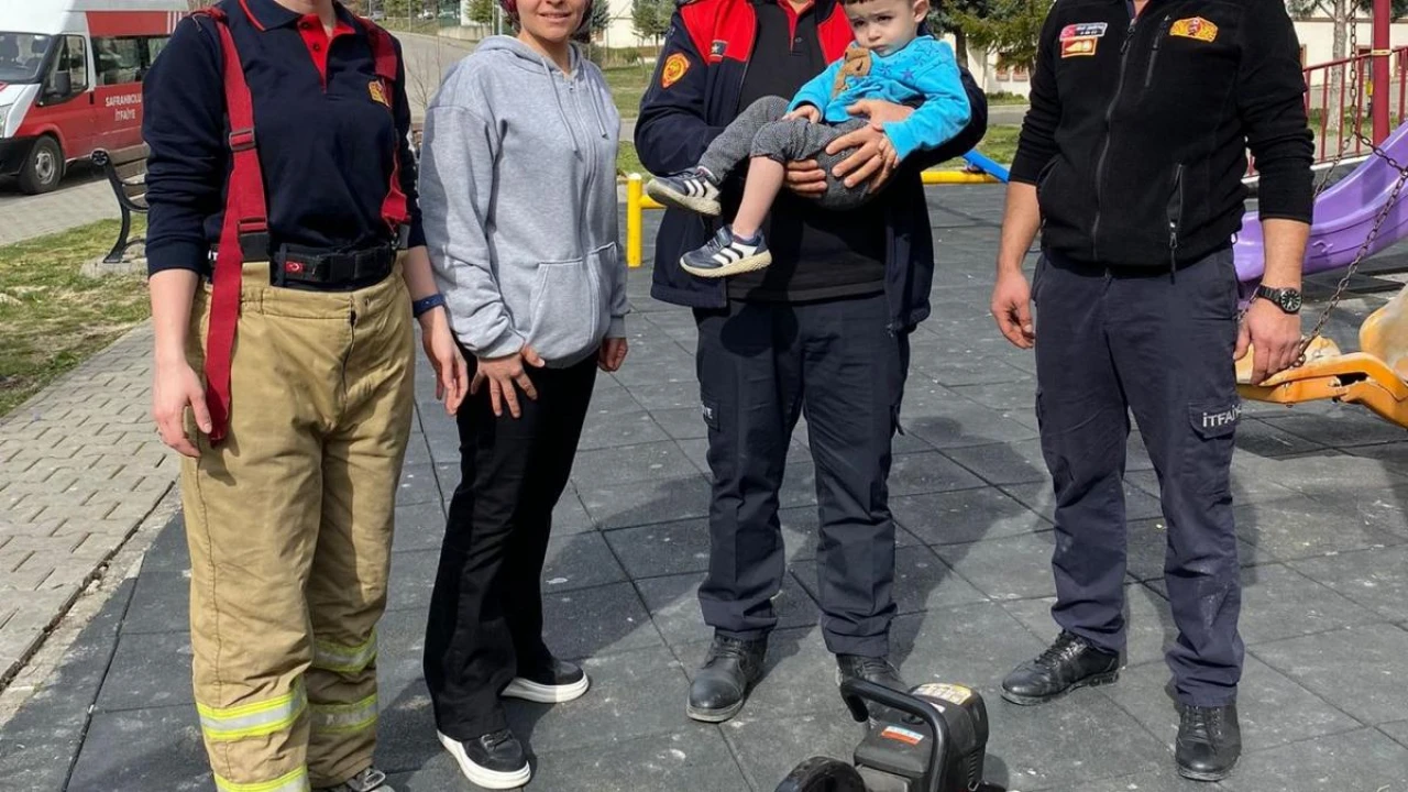 Karabük’ün Safranbolu ilçesinde parkta cimnastik aletlerine sıkışan 3 yaşındaki çocuğu itfaiye ekipleri kurtardı.
