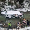 Gümüşhane’nin Kürtün ilçesindeki halk pazarında sergi açmaya giden konfeksiyon ürünleri yüklü minibüs Süme Deresine yuvarlandı. Kazada araçta sıkışan sürücü yaralandı.