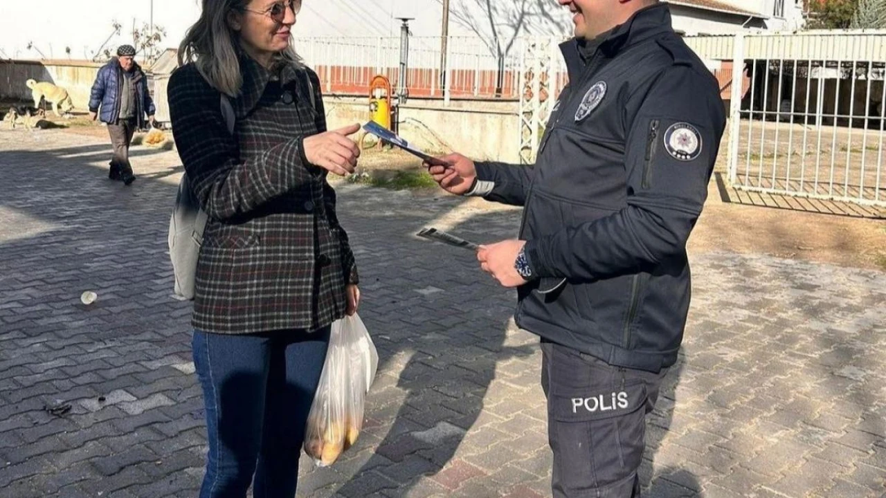 İçişleri Bakanlığı Emniyet Genel Müdürlüğü Asayiş Daire Başkanlığı tarafından hazırlanan "Kadın Destek" yazılı el broşürlerinin okunarak vatandaşlara verildi.