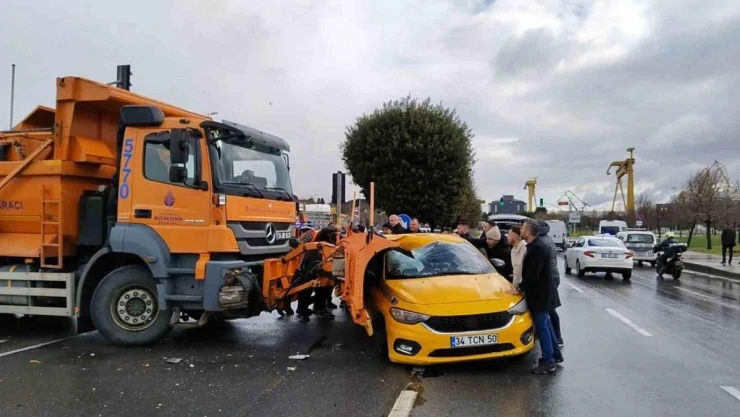 Pendik'te İBB'ye ait kar küreme aracı ticari taksiye çarptı: 3 yaralı