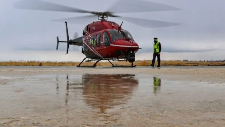 Van'da polis ekipleri, trafiğin yoğun olduğu kara yollarında helikopterle denetim yaptı.