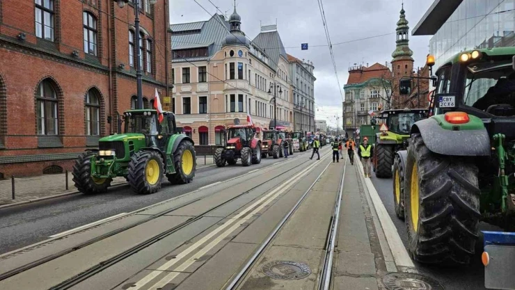 Avrupalı çiftçilerin Avrupa Birliği’nin (AB) tarım politikalarına karşı protestoları sürüyor. Polonyalı çiftçiler, bugün Ukrayna’dan ucuza tarım ve gıda ürünlerinin ithal edilmesini protesto etti. NSZZ RI "Solidarnosci" Sendikasının Polonya’nın Ukrayna ile olan tüm sınır geçişlerini kapatma çağrısının ardından çiftçiler, sabah saatlerinde tarım araçlarıyla Medyka sınır kapısına geldi. Çiftçilerin bir kısmı karayolunu trafiğe kapatırken, diğer kısmı ise Ukrayna ile Polonya’yı birbirine bağlayan demiryolunu bloke etti. Ukrayna’dan Polonya’ya giren trendeki mısırı demiryoluna döken çiftçiler, Polonya mili marşını okuyarak AB karşıtı sloganlar attı. Olay yerinde polisin geniş güvenlik önlemleri aldığı görülürken, çiftçilerin protestosunun yerel saatle 20.00’ye kadar sürmesi bekleniyor.