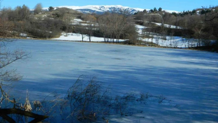 Ardahan’ın bin 583 rakımlı Posof merkezde karlar erimedi ama bazı köylerde ise buzlar çözülmedi. Armutveren köyünde ki göl üzerinde kar kalmasa da yüzeyi buz halini koruyor.