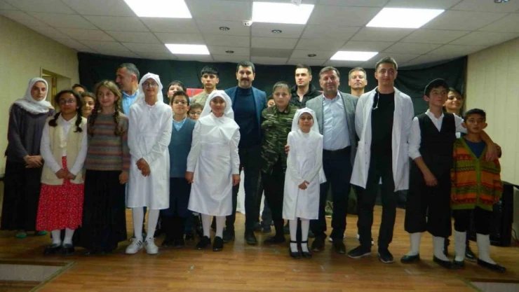 Saygı duruşu ve okunan istiklal marşından sonra Halit Paşa Yatılı Bölge Okulu Müdiresi Esra Demirci günün anlam ve önemiyle ilgili konuşmasını yaptıktan tiyatro gösterisine geçildi. Öğrenciler performansı profesyonel sanatçıları aratmazken katılımcılar duygu dolu anlar yaşadı.