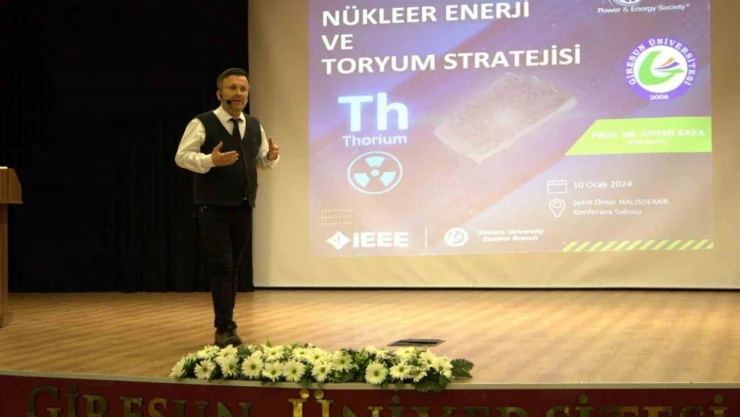 Giresun Üniversitesi’nde “Türkiye’nin Enerji Bağımsızlığı, Nükleer Enerji ve Toryum Stratejisi” konulu konferans düzenlendi. Konferansta konuşan Prof. Dr. Ayhan Kara, nükleer enerji ve toryum elementinin ülkemiz açısından önemiyle ilgili bilgiler verilirken, Türkiye’nin mevcut enerji portföyü ve enerjide dışa bağımlığın yanı sıra nükleer reaktör teknolojileri, enerji ihtiyacında nükleer reaktörlerin önemi, toryum elementinin nükleer teknolojilerdeki rolü, ülkemizdeki toryum elementi rezerviyle yerli ve milli reaktör yapımında toryumun sağlayacağı avantajlar ve nükleer reaktörlerin çevreye etkileri de konuşuldu.