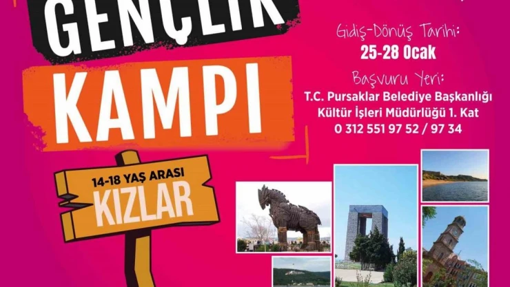 14-18 yaş aralığındaki genç kızlara yönelik düzenlenecek Gençlik Kampı için Kültür Müdürlüğü’nde kayıt işlemlerine başlayan Pursaklar Belediyesi, 350 kişinin yolcu edileceği Gençlik Kampı ve Çanakkale gezisi için son kayıt tarihinin 22 Ocak Pazartesi günü olduğunu açıkladı.