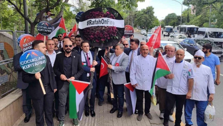 Refah'a saldırı İsrail Büyükelçiliği önünde protesto edildi