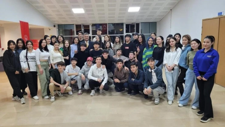 Kütahya Dumlupınar Üniversitesi (DPÜ) Rektörü Prof. Dr. Süleyman Kızıltoprak, Kütahya Gençlik Merkezi'nde gösteri sunan Kazak öğrencilerle bir araya geldi.