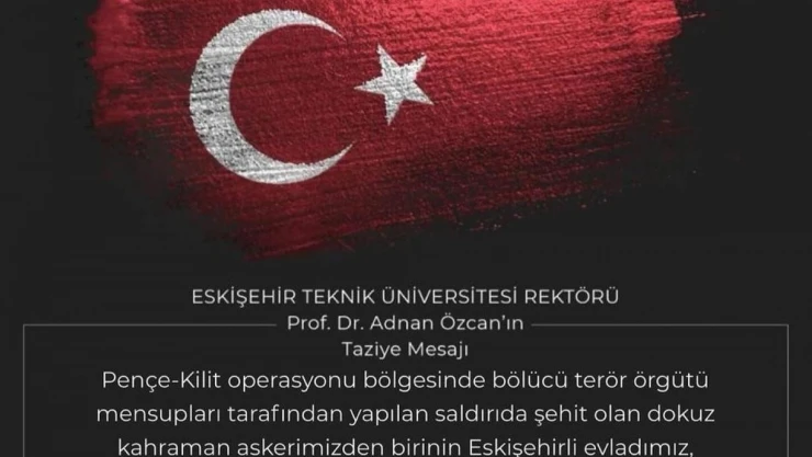 Pençe Kilit bölgesinde şehit olan 9 asker için Eskişehir Teknik Üniversitesi (ESTÜ) Rektörü Prof. Dr. Adnan Özcan, taziye mesajı paylaştı.