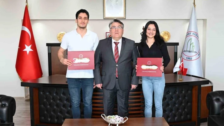 Zonguldak Bülent Ecevit Üniversitesi Rektörü Prof. Dr. İsmail Hakkı Özölçer, Sağlık Bilimleri Enstitüsü Beden Eğitimi ve Spor Anabilim Dalı yüksek lisans öğrencisi Melike Malkoç Özdemir, Öğrenci Konseyi Başkanı ve BESYO yüksek lisans öğrencisi Doğukan Kilcioğlu’nu makamında kabul etti.