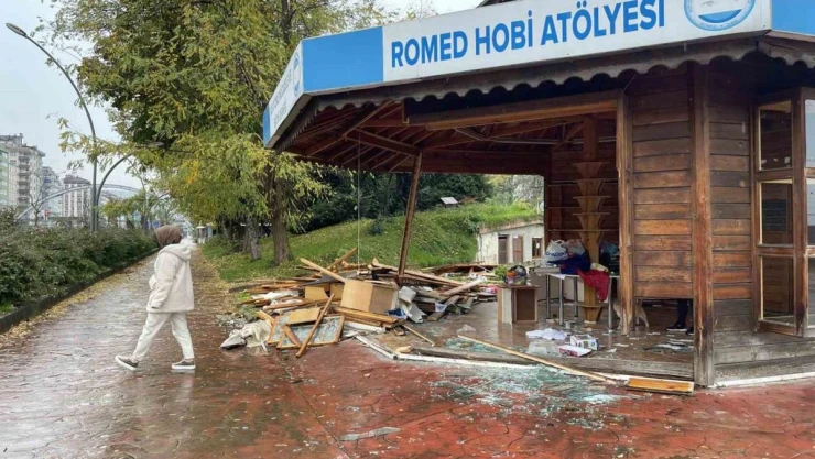 Rize'de otizmli öğrencilerin eğitim gördüğü ahşap hobi atölyesine çarpan araç hasara neden oldu