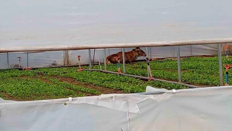 Mihalgazi'de dinlenmek isteyen bir geyik bölgede bulunan roka serasına girdi.