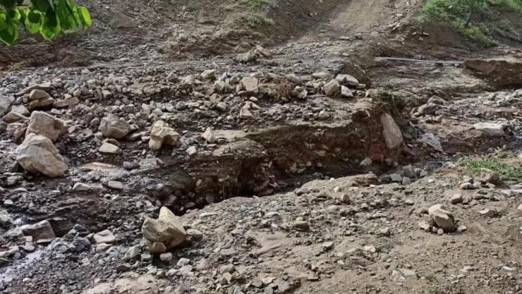 Sağanak sonrası köy yolu çöktü