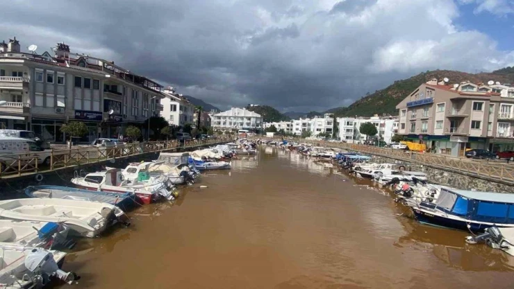 Sağanak sonrası Marmaris'te denizin rengi değişti