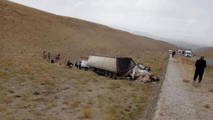 Öğlen saatlerinde Van istikametine giden sürücülerinin isimleri öğrenilemeyen bir kamyon ve bir tır, yolun kaygan olmasından dolayı kontrolden çıkarak devrildi. Haber verilmesi üzerine bölgeye gelen ekiplerin ilk müdahalesinin ardında kazada yaralanan 1 kişi hastaneye kaldırıldı.