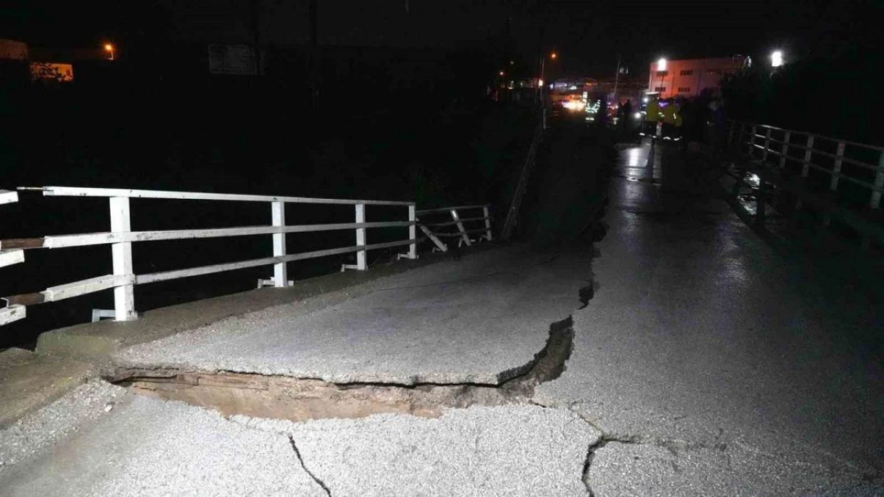 Balıkesir'in Edremit ilçesinde etkili olan sağanak yağış nedeniyle Zeytinli Çayı üzerinde bulunan karayolu köprüsü çöktü.