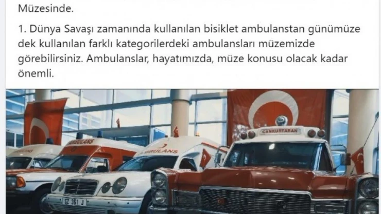 Sağlık Bakanı Fahrettin Koca, Bursa İnegöl Devlet Hastanesi’nde bulunan Ambulans Müzesi’ni paylaşarak; “Ambulanslar, hayatımızda, müze konusu olacak kadar önemli.” ifadelerini kullandı.