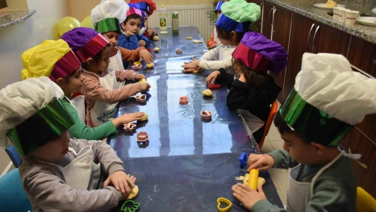 Çocuklar Pastacılık Kursunda, tatlı ve tuzlu pasta, kurabiye, kek, poğaça yapımını öğrenirken pasta malzemeleri gibi konularda da eğitim alıyor. Pastacılık Kursu Eğitmeni Meliha Gülkan, “Eğitim anlayışımız okul öncesi öğrencilerimizin tüm gelişim alanlarını destekleyerek, ilişsel, psikomotor, dil, sosyal olarak gelişmesi, öz bakım becerilerinin kazandırılması, ilkokula hazırlanmasıdır. Aile katılımı etkinlikleriyle veliyi de eğitime katarak çocuklarıyla daha kaliteli zaman geçirmelerine destek oluyoruz. Sosyal tesisimizde çocuklara İngilizce, jimnastik, robotik kodlama dersleri ayrıca kurabiye atölyesinde her hafta ailelerle birlikte kurabiye, kek, pizza, poğaça gibi çocukların yaparken zevk alacağı ayrıca sağlıklı bir şekilde beslenebileceği yiyecekler hazırlıyoruz. Böylece çocuklar kurabiye atölyesinde; iş birliği, paylaşma, yardımlaşma, hoşgörü, ürün ortaya koyma duygularını yaşıyor, yaparak yaşayarak öğreniyor ve velileriyle birlikte güzel zaman geçiriyor. Tüm bu fırsatlar öğrenciler için okul öncesi dönemin verimli geçmesini ve kendine güvenen, yetenekli ve başarılı öğrencilerin yetişmesini sağlıyor” ifadelerini kullandı.