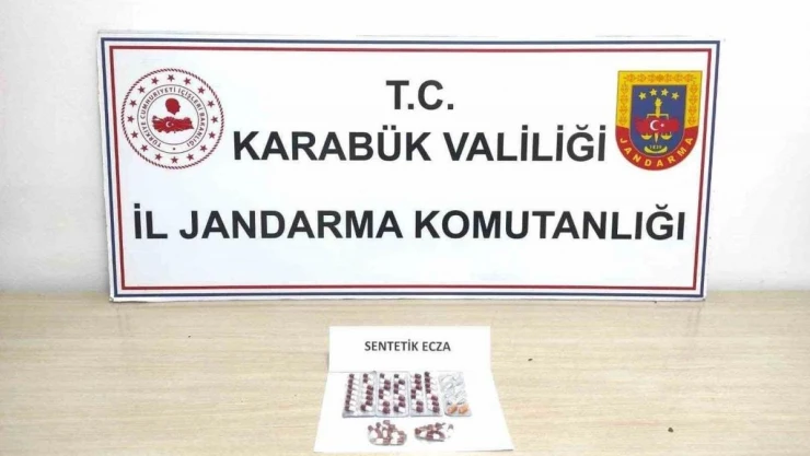 Karabük'te jandarma ekipleri iki şahsın bulunduğu araçta ve şahısların üzerinde yaptığı aramada sentetik hap ele geçirdi.