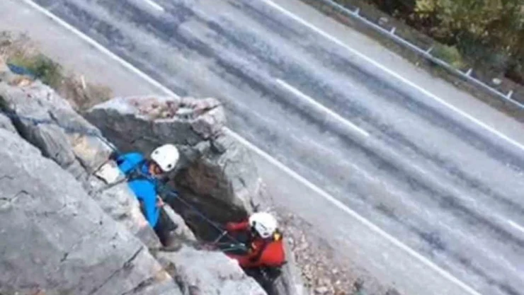 Adana’nın Saimbeyli ilçesinde kaya düşmesi sonucu 4 öğretmenin hayatını kaybettiği bölgede kaya temizlik çalışması sürüyor.