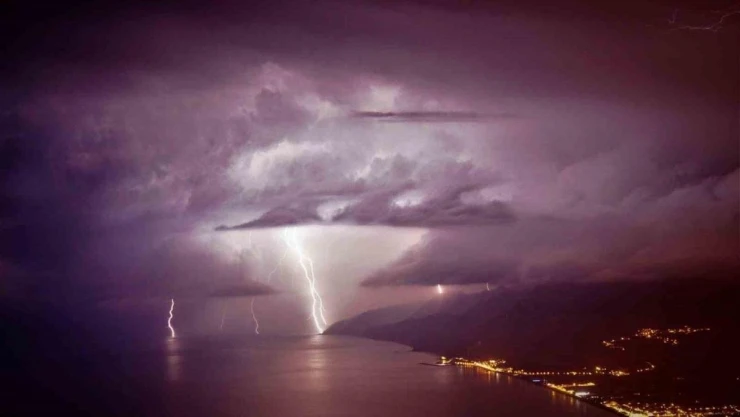 Hatay’ın Samandağ ilçesinde etkili olan şimşeklerden ötürü adeta görsel şölen oluştu. O anlar saniye saniye objektiflere yansıdı.