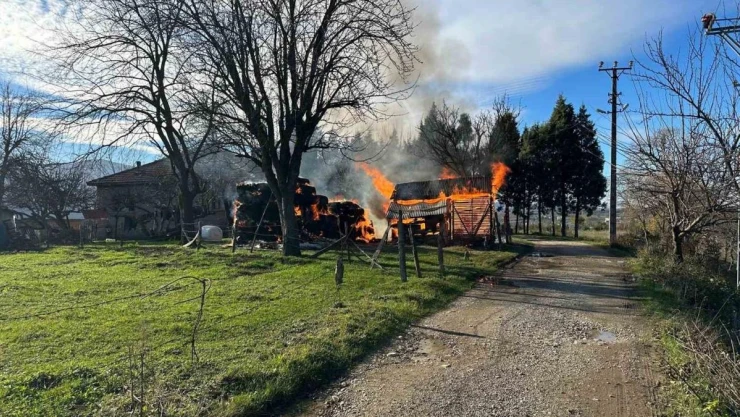 Sakarya'nın Akyazı ilçesinde bir vatandaşın evin bahçesinde bulunan samanlık alev alev yandı.