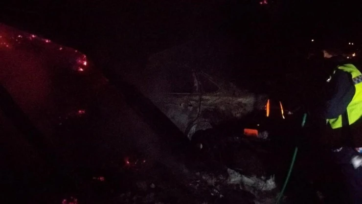 Samanlıkta çıkan yangın otomobili kullanılmaz hale getirdi