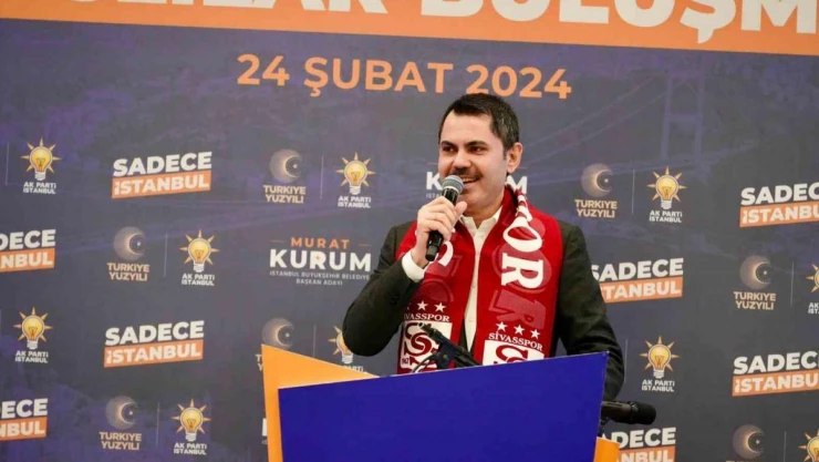 Bakanlığı döneminde Sivas’ta yaptığı çalışmalara değinen Kurum “Aşıkların piri Aşık Veysel’in dediği gibi, ‘Uzun ince bir yoldayız, gidiyoruz gündüz gece’ ülkemizin hizmetinde, milletimizin hizmetinde, İstanbul’un hizmetinde gece gündüz durmadan çalışıyoruz. Dünden bugüne büyük bir adanmışlıkla çalışıyoruz. Bakanlık görevim esnasında Sivas’ımıza sayısız eser kazandırdık. Sivas’ımızda tam 30 dev eserimizi kardeşlerimize armağan ettik. Bir yandan Sivas’ımızın dört bir yanını millet bahçelerimizle donatırken; bir yandan da hem altyapısını hem üstyapısını güçlendirerek Sivas’ın geleceğini inşa ettik. Bir taraftan Sivas’ımızda hemşerilerimize 10 bini aşkın yeni yuva kazandırırken; diğer yandan binlerce riskli evin ve dükkanın dönüşümünü gerçekleştirdik” şeklinde konuştu.