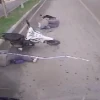 Şanlıurfa’nın Birecik ilçesinde şehir toplu taşıma otobüsünün motosikletle çarpışma anı kameraya yansıdı. Kazada iki kişi yaralandı.