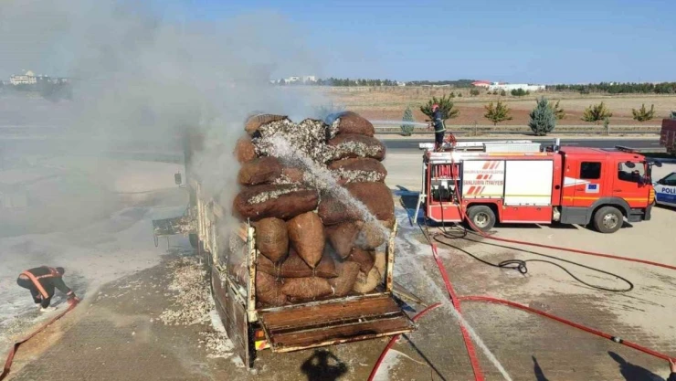 Şanlıurfa’da seyir halindeki pamuk yüklü kamyonda çıkan yangını itfaiye ekipleri söndürdü.