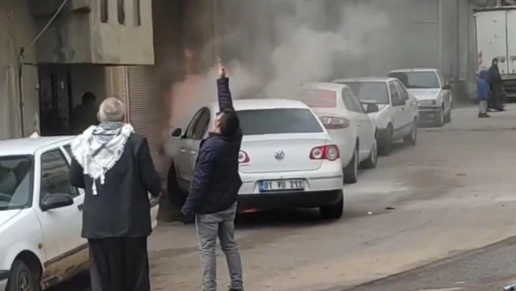 Şanlıurfa'da park halindeki otomobil cayır cayır yandı