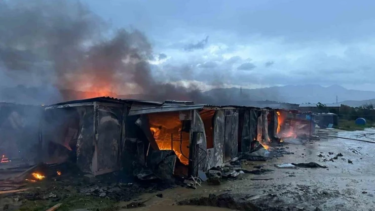 Şantiyede korkutan yangın: İşçilerin kaldığı konteynerler alevlere teslim oldu, o anlar kamerada