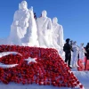 Konuşmaların ardından kardan heykellerin üzerinde bulunan Türk bayrağı kesilen kurdele ile birlikte kaldırıldı, bakanlar ve katılımcılar kırmızı karanfil bıraktı. Toplu fotoğraf çekim sonrası tören alanın üzerinde planörcüler gösteri yaptı. Planörcülerin gökyüzünde açtığı Türk bayrağı ve Atatürk posteri büyük alkış aldı.