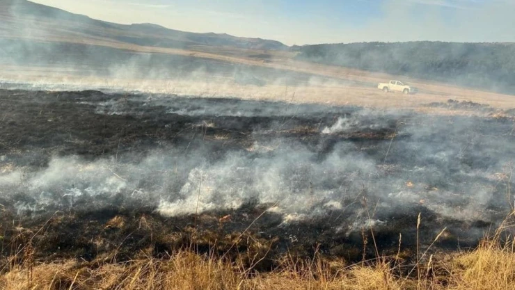 Kars’ın Sarıkamış ilçesi Allahuekber Dağları Milli Parkı Kaynak Yayla mevkii de örtü yangını çıktı.