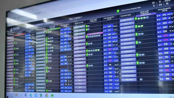 Sistem sayesinde SASKİ, başta pompa istasyonları, su depoları, arıtma tesisleri ve su dağıtım şebekesi gibi 17 ilçedeki 289 noktayı online bağlantıyla tek bir bilgisayardan 7/24 saniye saniye takip ediyor. Bünyesinde yer alan ana kontrol merkezini, gelişmiş bilgisayarlarla donatıp özel bilgisayar yazılımlarıyla destekleyen SASKİ, su kaçakları ve şebeke arızalarını da tespit ediyor. 2024 yılı yatırımları kapsamında kurum, SCADA merkeziyle haberleşecek 70 istasyonun yanı sıra 1 adet de özel izleme sistemi kuracak.