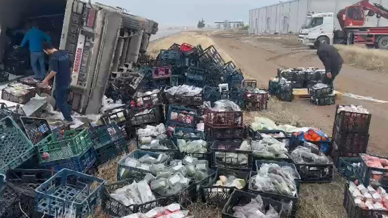 Afyonkarahisar’da sebze ve meyve yüklü tır sürücüsünün kontrolünü kaybetmesi sonucu şarampole devrildi. Ölen ya da yaralanan olmadığı kazada büyük çapta maddi hasar meydana geldi.
