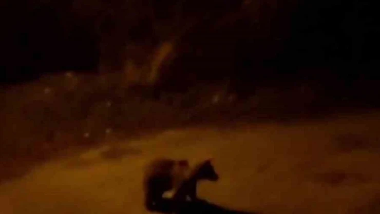 Karabük’te şehir merkezine inen ayı ve yaban tavşanı cep telefonu kamerası ile görüntülendi.