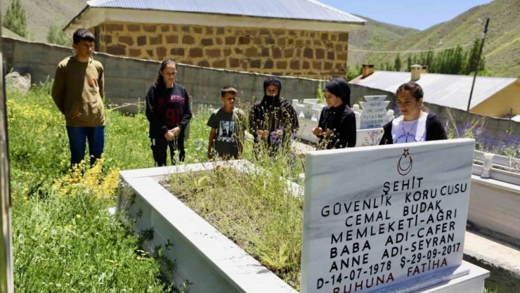 Ağrı'da 2017 yılında şehit olan güvenlik korucusu Cemal Budak'ın 5 çocuğu, Babalar Günü'nde şehit babalarını mezarı başında andı.