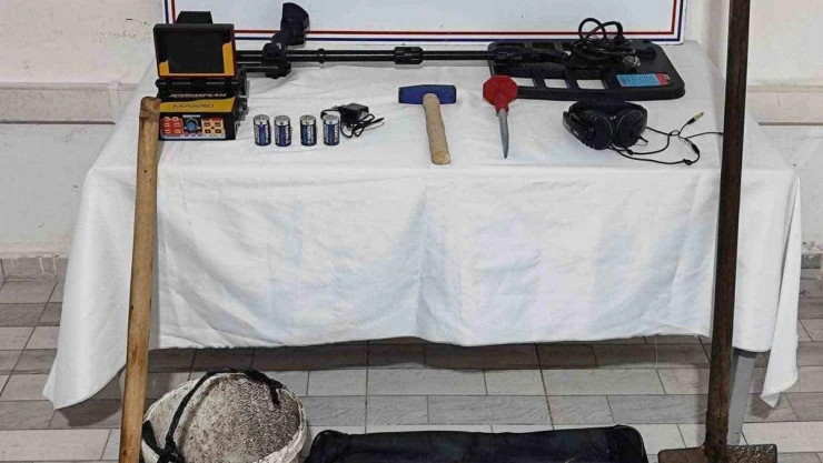 Bitlis Valiliğinden yapılan açıklamada, fotokapana takılan görüntülerde 3 kişinin mezarlıkta define aradığının tespit edildiği bildirildi. Açıklamada, “Bitlis İl Jandarma Komutanlığı unsurlarınca yapılan istihbari çalışmalar neticesinde; Güroymak ilçesi Kavunlu köyü mezarlığında bulunan Selçuklu mezarlarında kaçak kazı yapılacağına dair alınan duyum üzerine, icra edilen operasyonda bölgeye yerleştirilen fotokapana takılan görüntülerde 3 şüpheli şahsın izinsiz arama ve kaçak kazı yaptıkları tespit edilerek suçüstü yakalanmışlardır. Şahıslar ile birlikte 1 adet metal dedektör, 1 adet kazma, 1 adet kürek, 1 adet delici-kırıcı, 1 adet çekiç ve kova ele geçirilmiştir. Olay ile ilgili Güroymak Cumhuriyet Başsavcılığı talimatı ile ele geçirilen malzemelere el konulmuş ve şüpheli şahıslar hakkında adli işlem başlatılmıştır. Güvenlik güçlerimiz bölge halkımızın da desteği ile asayiş, huzur ve güvenliği sağlamak maksadıyla ilimiz genelinde suç ve suçlularla mücadelesini kararlılıkla sürdürecektir” denildi.
