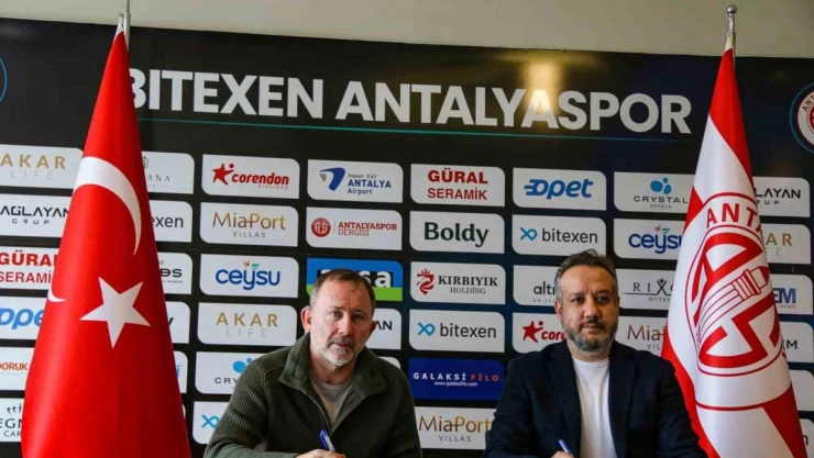 Antalyaspor, yeni Teknik Direktör Sergen Yalçın için Döşemealtı ilçesindeki Atilla Vehbi Konuk Tesisleri’nde imza töreni düzenledi. Törende Antalyaspor Başkanı Sinan Boztepe ve yönetim kurulu üyeleri de hazır bulundu. Sergen Yalçın’ın dünyada en değerli hocalar arasında yer aldığını ifade eden Antalyaspor Başkanı Sinan Boztepe, “Bana göre bu sene ligin şampiyonu 3’üncu olan takım olacak. İnşallah biz de Sergen hocamızla başarı hedeflerimize doğru emek harcayacağız. Bu sezon sonuna kadar hocamızla beraberiz, sezon sonundaki gelişmelere göre de sureci takip edeceğiz. Başarı için her zaman hedeflerimiz ileridedir. Transfer çalışmaları için hocamıza zaman tanımamız gerekir. Başarı için çalışmalarımızı sürdüruyoruz. Transfer çalışmaları yapıyorduk, yeni tercihler için hocamıza zaman tanımamız gerekir. Antalya başarı istiyor, Antalyaspor’un başarılı bir grafiği olması gerekir. Taraftarlarımız bundan sonra daha heyecanlı maçlar izleyecek" diye konuştu.