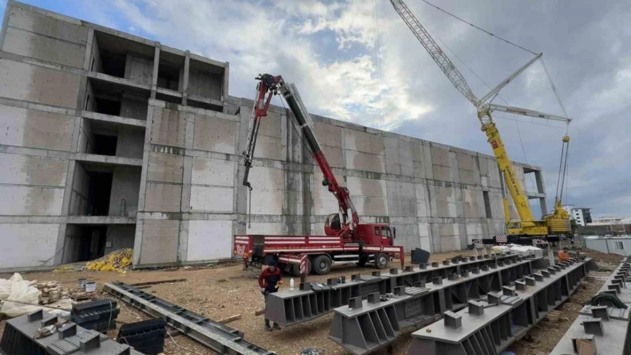 Antalya Büyükşehir Belediyesi tarafından yapılan Serik Kongre ve Kültür Merkezi inşaatı tüm hızıyla devam ediyor. Projede betonarme ve duvar imalatları tamamlanırken, çelik çatı imalatlarına geçildi.