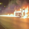 Servis minibüsü alev topuna döndü, o anlar kamerada