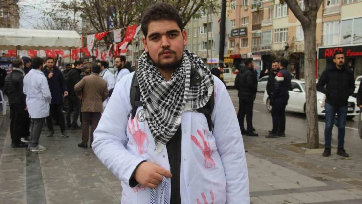 Basın açıklamasında bulunan Tıp Fakültesi son sınıf öğrencisi Mustafa Kılıç, İsrail savaş suçlusu olduğunu söyleyerek, "İşgalci İsrail’in Filistin’de yıllardır devam ettirdiği sistematik işgal ve zulüm 7 Ekim’den buyana soykırımdan başka ifadeyle anlatılamayacak boyuta ulaşmakta ve Gazze’de sivil; hasta, hekim, çocuk ve kadın fark etmeksizin büyük katliam bütün dünyanın gözü önünde devam etmektedir. İnsan hakları ve uluslararası hukuk kuralları açıkça ihlal edilerek binlerce sivil, kadın ve çocuk acımasızca katledilmiştir. Ayrıca tıbbi malzemelerin temini ve sağlık hizmetlerinin sunumu da engellenerek küvezdeki bebeklerin dahi ölümüne neden olmuştur. Hekimler olarak İsrail’in saldırılarına karşı tepki göstermeye, Gazze’de ki sivillerin, kadınların, çocukların ve meslektaşlarımızın ve hastaların hayatlarının korunması adına hekimlik mesleğine yakışır bir durum ortaya koymakta kararlıyız. Bu hafta sessiz yürüyüşümüz İstanbul, Ankara, İzmir, Bursa, Sivas başta olmak üzere 20 il de eşzamanlı olarak düzenlenmektedir. Başta Dünya Sağlık Örgütü olmak üzere dünyada ki tüm hekim, sağlık çalışanları ve vicdanlı insanları harekete geçmeye çağırıyoruz. Ayrıca tüm meslektaşlarımızı yapılan zulme açıktan desteğini bildiren ilaç firmalarını boykot etmeye davet ediyoruz. Normalleştirmeyeceğiz. Asla sindirmeyeceğiz. Sabırla ve azimle hekimler olarak zulme karşı duranlar olacağız. Bu onurlu yürüyüşte yer alıp zulme karşı durmak adına her birinizi sessiz yürüyüş kervanımızda ses olmaya davet ediyoruz. Tüm dünyaya İsrail savaş suçlusu olarak ilan ediyoruz" ifadelerine yer verdi.