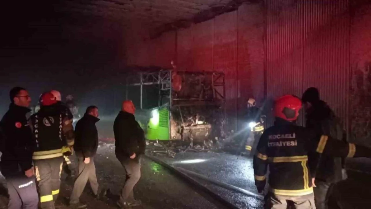 Kocaeli'nin İzmit ilçesinde seyir halindeki halk otobüsünün yanması neticesinde geriye sadece aracın iskeleti kaldı.