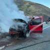 Erzincan-Gümüşhane kara yolundaki Ahmediye geçidinde seyir halinde ilerleyen araç yanarak kullanılamaz hale geldi.