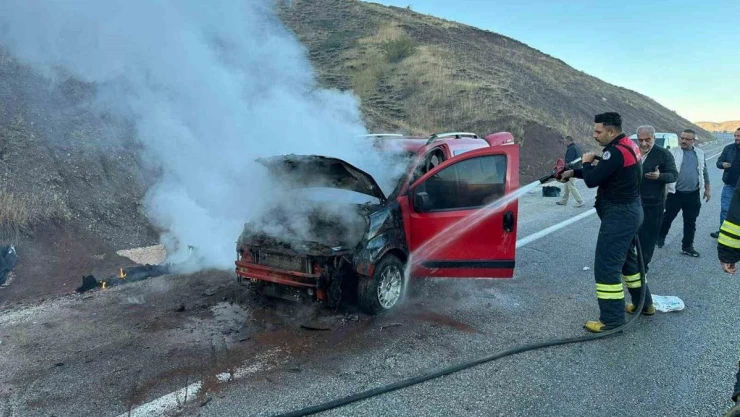 Olay, Erzincan - Gümüşhane kara yolundaki Ahmediye geçidinde meydana geldi. Alınan bilgiye göre seyir halinde ilerleyen hafif ticari aracın motor kısmından bir anda dumanlar yükselmeye başladı. Araç sahibi aracını sağa yanaştırırken dumanlar kısa sürede yerini alevlere bıraktı. Kendi çabaları yetersiz kalan sürücü durumu 112 Acil Çağrı Merkezi’ne bildirdi. Olay yerine gelen itfaiye ekipleri, araçta çıkan yangını söndürerek soğutma çalışması yaptı. Yangında yaralanan olmazken araç tamamen kullanılamaz hale geldi.